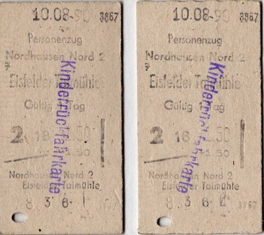 | Harzquerbahn Nordhausen - Eisfelder Talmühle - Nordhausen (10.08.1990) | ||||